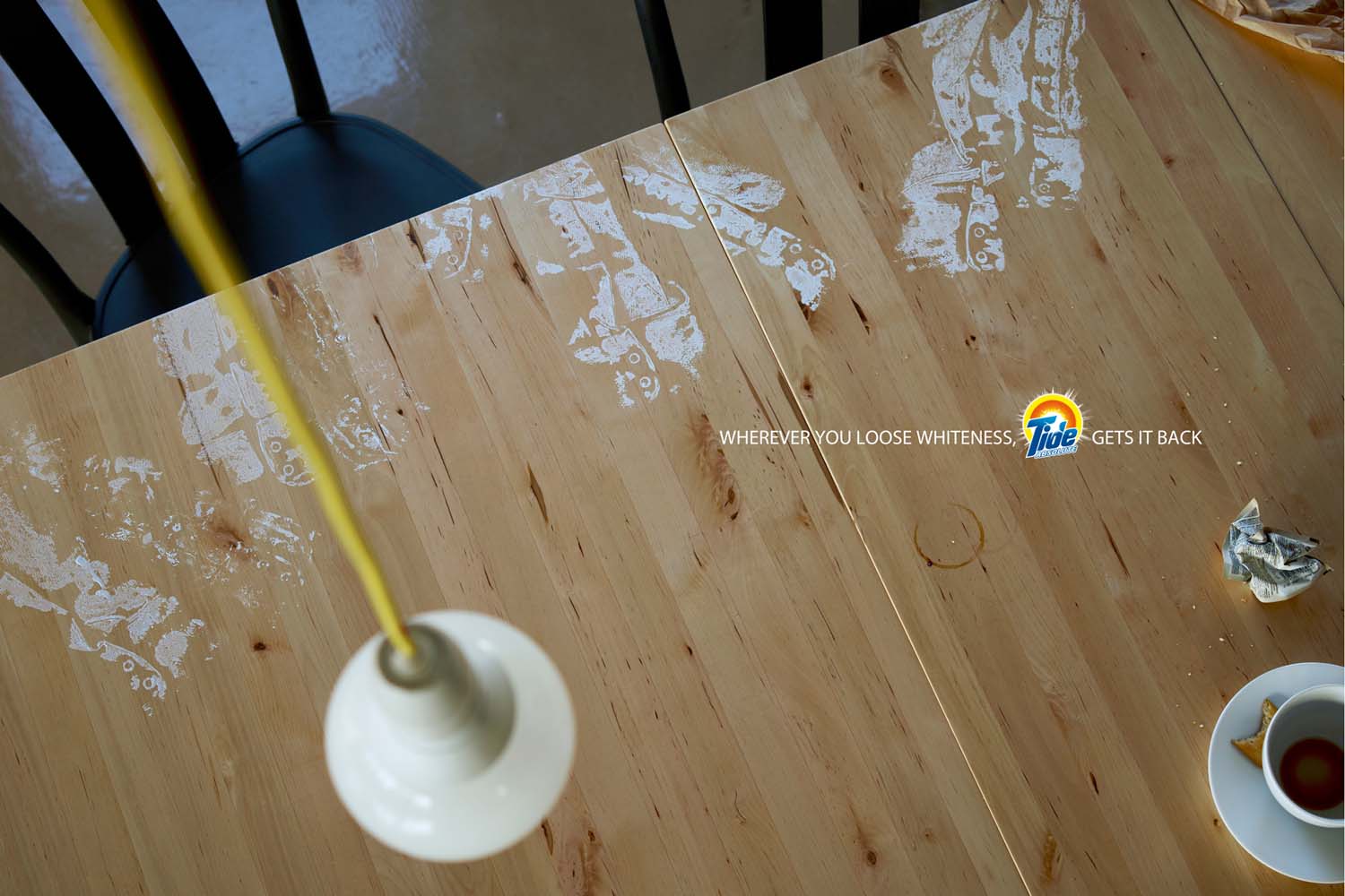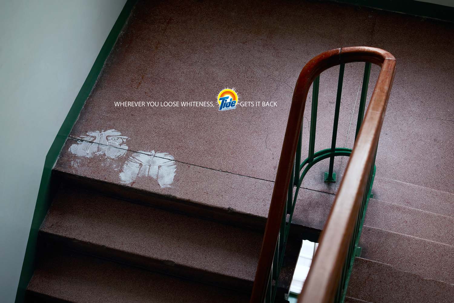 For years Tide/Vizir has been talking about whiteness as its main functional benefit. These series of prints show whiteness as stolen from clothes by dirty surfaces.